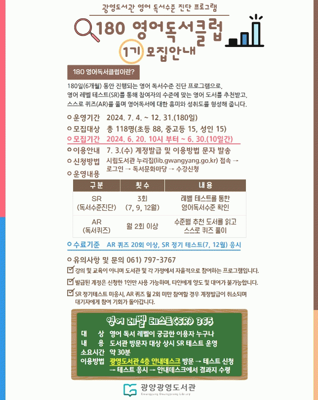 [¹Ìµð¾îÀü³² ÀÓ¼º¿Ï ±âÀÚ]¿µ¾î ÁÖÁ¦Æ¯È µµ¼°üÀÎ ±¤¾ç±¤¿µµµ¼°üÀÌ 7¿ùºÎÅÍ ¿µ¾î µ¶¼ ¼öÁØ Áø´Ü ÇÁ·Î±×·¥ÀÎ ¡®180 ¿µ¾îµ¶¼Å¬·´¡¯À» ¿î¿µÇÑ´Ù°í ¹àÇû´Ù. ¡®180 ¿µ¾îµ¶¼Å¬·´¡¯Àº Âü°¡ÀÚ°¡ ¿Â¶óÀÎ Å×½ºÆ®·Î ÀÚ½ÅÀÇ ¿µ¾îµ¶¼ ·¹º§À» ã°í¡¦