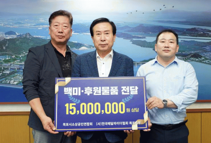 [¹Ìµð¾îÀü³² °í±Ô¼® ±âÀÚ]¸ñÆ÷½Ã¼Ò»ó°øÀο¬ÇÕȸ¡¤(»ç)Àü±¹¹è´Þ¶óÀÌ´õÇùȸ ¸ñÆ÷ÁöºÎ°¡ ¸ñÆ÷½Ã¿¡ ÈÄ¿ø¹°Ç°À» Àü´ÞÇß´Ù. ¸ñÆ÷½Ã¼Ò»ó°øÀο¬ÇÕȸÀº ȸÀå ÃëÀÓ ±â³ä ²É ÈÇÑ ´ë½Å ¹ÞÀº ½Ò 10§¸ 30Æ÷(100¸¸¿ø »ó´ç)¸¦, (»ç)Àü±¹¹è´Þ¶óÀÌ´õÇùȸ ¡¦