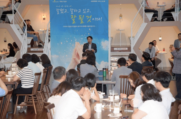[¹Ìµð¾îÀü³² Á¦°¥´ëÁ¾ ±âÀÚ]°±âÁ¤ ±¤ÁÖ±¤¿ª½ÃÀåÀÌ 18ÀÏ ¹Î¼±8±â 2ÁÖ³âÀ» ¾ÕµÎ°í Áö³ 2³â °£ ÈûÂ÷°Ô ´Þ·Á¿Â °øÁ÷Àڵ鿡°Ô ¡®°¨»çÀÇ ¸¶À½À» ´ãÀº ÆíÁö¡¯¸¦ º¸³Â´Ù. ° ½ÃÀåÀº °øÁ÷ÀÚµéÀÇ ³ë°í¸¦ °Ý·ÁÇϰí, ¡®2030 ±¤ÁÖ ´ëÀüȯ ½ÇÇö¡¯À» À§¡¦
