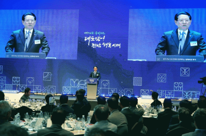 [¹Ìµð¾îÀü³² Á¦°¥´ëÁ¾ ±âÀÚ]Àü¶ó³²µµ°¡ 14ÀÏ ¼¿ï µå·¡°ï½ÃƼȣÅÚ¿¡¼ ±¤ÁÖÀü³²½Ãµµ¹Îȸ Çâ¿ì 300¿© ¸í°ú ÇÔ²² Àü³²ÀÇ ¹Ì·¡¸¦ ³íÀÇÇÏ´Â ¼ÒÅëÀÇ Àå, ¡®Á¤Ã¥ºñÀü Åõ¾î¡¯¸¦ Ãâ¹ßÇß´Ù. ¡®Á¤Ã¥ºñÀü Åõ¾î¡¯´Â Àü³²µµ°¡ ¹Î¼± 8±â ¹ÝȯÁ¡À» ¸Â¾Æ¡¦