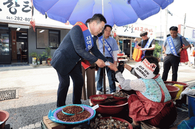 [¹Ìµð¾îÀü³² ±èÆÇ±¹ ±âÀÚ]Àü³² ¹«¾È±ºÀº Áö³ 11ÀÏ ³ó¹ø±âö ħüÇÑ ÀüÅë½ÃÀå¿¡ ¼Òºñ ÃËÁøÀ» ÅëÇÑ È°·ÂÀ» ºÒ¾î³Ö±â À§ÇØ Àü °øÁ÷ÀÚ°¡ Âü¿©ÇÏ´Â ÀÏ·ÎÀüÅë½ÃÀå À庸±â Çà»ç¸¦ ÃßÁøÇß´Ù. Çà»ç¿¡¼ ±è»ê ±º¼ö´Â °øÁ÷ÀÚµé°ú ÇÔ²² ÀÏ·ÎÀüÅë½ÃÀ塦