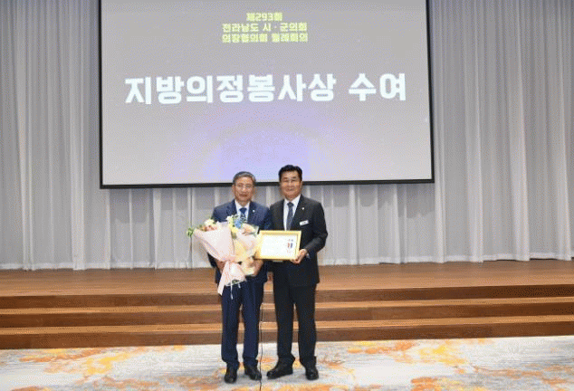 [¹Ìµð¾îÀü³² Á¦°¥´ëÁ¾ ±âÀÚ]³ªÁÖ½ÃÀÇȸ ÀÌ»ó¸¸ ÀÇÀåÀÌ Áö³ 11ÀÏ °íÈﱺ¿¡¼ ¿¸° Á¦293ȸ Àü¶ó³²µµ½Ã±ºÀÇȸÀÇÀåÇùÀÇȸ¿¡¼ ¡®´ëÇѹα¹½Ã±ºÀÚÄ¡±¸ÀÇȸÀÇÀåÇùÀÇȸ Áö¹æÀÇÁ¤ºÀ»ç»ó¡¯À» ¼ö»óÇÏ´Â ¿µ¿¹¸¦ ¾È¾Ò´Ù. ¡®Áö¹æÀÇÁ¤ºÀ»ç»ó¡¯Àº Áö¹æ¡¦
