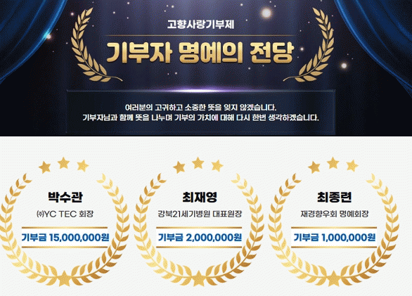[¹Ìµð¾îÀü³² ÀüÇü¼º ±âÀÚ]¿©¼ö½Ã °íÇâ»ç¶û±âºÎÁ¦¿¡ °í¾×±âºÎ°¡ ÁÙÀ» ÀÕ°í ÀÖ´Ù. ½Ã¿¡ µû¸£¸é Áö³ 10ÀÏ ¢ßYC TEC ¹Ú¼ö°ü ȸÀå °¡Á·ÀÌ °¢ 500¸¸ ¿ø¾¿ ÃÑ 1500¸¸ ¿øÀ» ±âºÎÇß´Ù. ¹Ú¼ö°ü ȸÀåÀº Áö³ÇØ °íÇâ»ç¶û±âºÎÁ¦°¡ ½ÃÀÛµÈ Ã¹ ÇØ¿¡¡¦