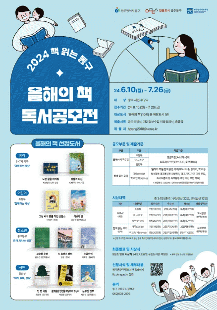 [¹Ìµð¾îÀü³² ±èÁ¤¿ì ±âÀÚ]±¤ÁÖ µ¿±¸´Â ¿À´Â 7¿ù 26ÀϱîÁö Ã¥ Àд ¹®È È®»ê°ú µ¶¼ ÀÇ¿åÀ» ³ôÀ̱â À§ÇÑ 2024 Ã¥ Àд µ¿±¸ ¡®¿ÃÇØÀÇ Ã¥¡¯ µ¶¼°ø¸ðÀüÀ» °³ÃÖÇÑ´Ù°í ¹àÇû´Ù. À̹ø °ø¸ðÀüÀº Ã¥°ú ÇÔ²² ¼ÒÅëÇϸç ÇູÇÑ Àι®µµ½Ã¸¦ Á¶¼ºÇÏ¡¦