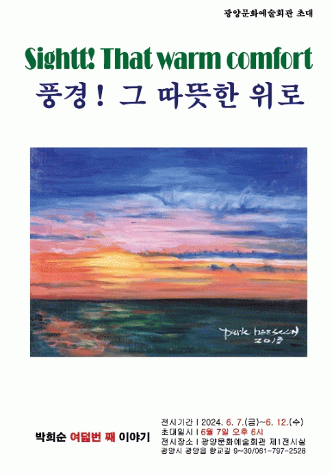 [¹Ìµð¾îÀü³² ÀÓ¼º¿Ï ±âÀÚ]±¤¾ç½Ã°¡ ¿À´Â 7ÀϺÎÅÍ ¹®È¿¹¼úȸ°ü 1Ãþ Àü½Ã½Ç¿¡¼ ¡®Ç³°æ! ±× µû¶æÇÑ À§·Î î÷¡¯À» °³ÃÖÇÑ´Ù. À̹ø Àü½Ã´Â ¼¶Áø° ÀÛ°¡È¸ ȸÀåÀÌÀÚ Àü³²¿©¼ºÀÛ°¡È¸ ºÎȸÀåÀ» ¸Ã°í ÀÖ´Â ¹ÚÈñ¼ø ÀÛ°¡ÀÇ ÀÛǰ Àü½Ãȸ·Î, µû¶æÇÑ¡¦