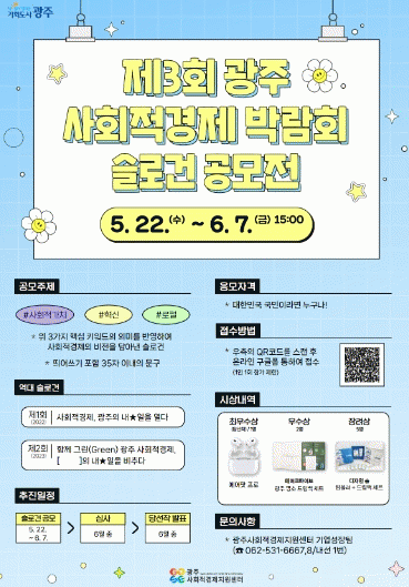 [¹Ìµð¾îÀü³² Á¦°¥´ëÁ¾ ±âÀÚ]±¤ÁÖ±¤¿ª½Ã´Â ¡®Á¦3ȸ ±¤ÁÖ»çȸÀû°æÁ¦¹Ú¶÷ȸ¡¯ÀÇ ¼º°øÀû °³ÃÖ¸¦ À§ÇØ ¡®»çȸÀû°¡Ä¡¡¯, ¡®Çõ½Å¡¯, ¡®·ÎÄá¯À» ÁÖÁ¦·Î ½½·Î°Ç(±¸È£) °ø¸ðÀüÀ» ¿¬´Ù. ±¸È£(½½·Î°Ç)´Â »çȸÀû °¡Ä¡¸¦ âÃâÇϰí ÀÖ´Â »çȸÀû°æÁ¦ ºÎ¡¦