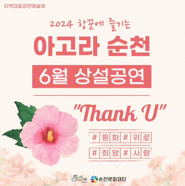 [¹Ìµð¾îÀü³² ÀÓ¼º¿Ï ±âÀÚ]¼øÃµ¹®ÈÀç´ÜÀº ¡®2024 Çײۿ¡ Áñ±â´Â ¾Æ°í¶ó ¼øÃµ¡¯(ÀÌÇÏ ¡®2024 ¾Æ°í¶ó ¼øÃµ¡¯) 6¿ù °ø¿¬À» ¼øÃµ½Ã ÀÏ¿ø¿¡¼ ÁøÇàÇÑ´Ù. ¡®2024 ¾Æ°í¶ó ¼øÃµ¡¯ 6¿ù °ø¿¬Àº È£±¹ º¸ÈÆÀÇ ´ÞÀ» ±â³äÇÏ¿© Àǹ̸¦ µÇ»õ±â°í Æòȸ¦ ¡¦