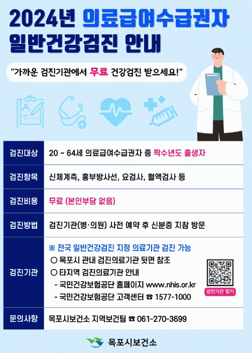 [¹Ìµð¾îÀü³² °í±Ô¼® ±âÀÚ]¸ñÆ÷½Ã°¡ ÀÇ·á±Þ¿©¼ö±Þ±ÇÀÚÀÇ ¸¸¼ºÁúȯ°ú °Ç°À§Çè¿äÀÎ Á¶±â ¹ß°ß ¹× Ä¡·á ¿¬°è¸¦ À§ÇØ ÀϹݰǰ°ËÁø Áö¿ø »ç¾÷À» ÃßÁøÇϰí ÀÖ´Ù. 2024³â ¿ÃÇØ ÀÇ·á±Þ¿©¼ö±Þ±ÇÀÚ Áß ÀϹݰǰ°ËÁø ´ë»óÀÚ´Â 20~64¼¼ ¦¼ö³âµµ Ã⡦