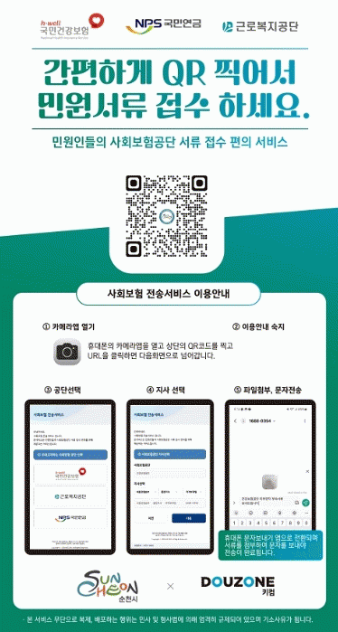 [¹Ìµð¾îÀü³² ÀÓ¼º¿Ï ±âÀÚ]¼øÃµ½Ã´Â ¹Î¿øÀÎÀÌ »çȸº¸Çè°ø´Ü(±¹¹Î¿¬±Ý, °Ç°º¸Çè, ±Ù·Îº¹Áö)¿¡ °£ÆíÇÏ°Ô ¹®¼¸¦ Á¦ÃâÇÒ ¼ö ÀÖ´Â '»çȸº¸Çè ½º¸¶Æ® ¹®¼Àü¼Û ¼ºñ½º'¸¦ 30ÀϺÎÅÍ Á¦°øÇϰí ÀÖ´Ù. ÀÌ ¼ºñ½º´Â ¹Î¿øÀÎÀÌ ¼·ù¸¦ ¹ß±ÞÇÏ¿© ½º¸¶¡¦