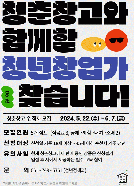 [¹Ìµð¾îÀü³² ÀÓ¼º¿Ï ±âÀÚ]¼øÃµ½Ã´Â ¡®Ã»Ãáâ°í¡¯¿¡¼ â¾÷ÇÒ Ã»³â 5¸íÀ» ¸ðÁýÇÑ´Ù°í ¹àÇû´Ù. ûÃáâ°í´Â Áö³ 2017³â °³¼Ò ÀÌ·¡ 79¸íÀÇ Á¹¾÷»ýÀ» ¹èÃâÇÑ Àü±¹ À¯¸í û³â¸ôÀÌ´Ù. ½Ã´Â û³âµéÀÇ ¾ÈÁ¤ÀûÀΠâ¾÷±â¹Ý ¸¶·ÃÀ» À§ÇØ À̰÷¿¡¼¡¦