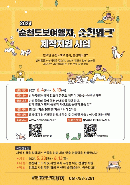 [¹Ìµð¾îÀü³² ÀÓ¼º¿Ï ±âÀÚ]¼øÃµ½Ã¿µ»ó¹Ìµð¾î¼¾ÅÍ´Â '2024¡®¼øÃµµµº¸¿©ÇàÀÚ, ¼øÃµ¿öÅ©¡¯Á¦ÀÛÁö¿ø »ç¾÷'ÀÇ Âü¿©ÀÚ¸¦ 6¿ù 13ÀϱîÁö ¸ðÁýÇÑ´Ù°í ¹àÇû´Ù. ¡®¼øÃµµµº¸¿©ÇàÀÚ, ¼øÃµ¿öÅ©¡¯´Â »êÃ¥ÇÏµí °ÉÀ¸¸ç ¼øÃµÀÇ °æ°ü°ú ÀÏ»ó, º¯È¸¦ ¿µ»óÀ¸·Î¡¦