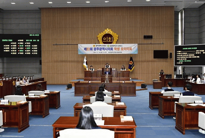 [¹Ìµð¾îÀü³² Á¦°¥´ëÁ¾ ±âÀÚ]±¤ÁÖ±¤¿ª½ÃÀÇȸ´Â 5¿ù 24ÀÏ ¿ÀÈÄ 2½Ã 30ºÐ ½ÃÀÇȸ º»È¸ÀÇÀå¿¡¼ ¼Û±¤ÁßÇб³ ÇлýµéÀ» ´ë»óÀ¸·Î ¡®Á¦83ȸ ±¤ÁÖ±¤¿ª½ÃÀÇȸ Çлý ¸ðÀÇÀÇȸ¡¯¸¦ °³ÃÖÇß´Ù. À̳¯ Çà»ç¿¡´Â ¼Û±¤ÁßÇб³ Çлý 31¸íÀÌ Âü¿©ÇßÀ¸¸ç, ¹Ú¡¦