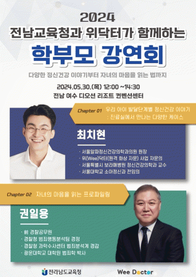 [¹Ìµð¾îÀü³² °í±Ô¼® ±âÀÚ]Àü¶ó³²µµ±³À°Ã»Àº 30ÀÏ ¿©¼ö µð¿À¼ÇÈ£ÅÚ¿¡¼ ¡®Àü³²±³À°Ã»°ú À§(Wee) ´ÚÅͰ¡ ÇÔ²²ÇÏ´Â Çкθ𠰿¬È¸¡¯¸¦ °³ÃÖÇÑ´Ù. À̹ø °¿¬È¸´Â ºÎ¸ð-ÀÚ³à °£ °Ç°ÇÑ °ü°è Á¤¸³°ú ¿ø¸¸ÇÑ °¡Á¤»ýȰÀ» À̲ø ¼ö ÀÖ´Â ÀÇ»ç¼ÒÅ롦
