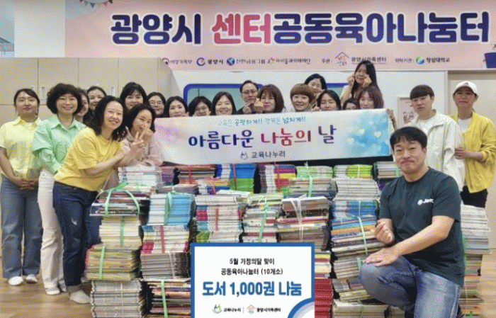 [¹Ìµð¾îÀü³² ÀÓ¼º¿Ï ±âÀÚ]±¤¾ç½Ã°¡Á·¼¾ÅÍ´Â Áö³ 14ÀÏ ±³À° ºÀ»ç´Üü ±³À°³ª´©¸®·ÎºÎÅÍ 5¿ù °¡Á¤ÀÇ ´ÞÀ» ¸Â¾Æ ¾Æµ¿¡¤Ã»¼Ò³âÀ» À§ÇØ µµ¼ 1,000±ÇÀ» ³ª´® ¹Þ¾Ò´Ù°í ¹àÇû´Ù. Àü´Þ¹ÞÀº µµ¼µéÀº ¾çÀ°ÀÚ¿Í ¾Æµ¿¡¤Ã»¼Ò³âÀÌ ¾ðÁ¦µç ÀÌ¿ëÇÒ ¼ö ¡¦