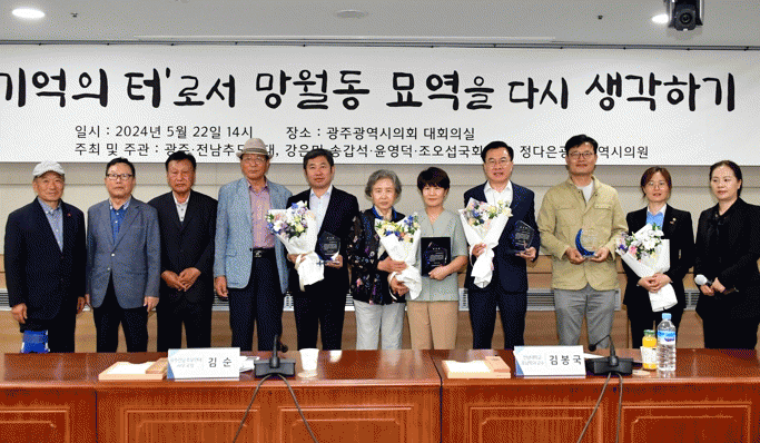 [¹Ìµð¾îÀü³² Á¦°¥´ëÁ¾ ±âÀÚ]Á¤´ÙÀº ±¤ÁÖ±¤¿ª½ÃÀÇ¿øÀº 22ÀÏ ¿ÀÈÄ 2½Ã ±¤ÁÖ±¤¿ª½ÃÀÇȸ 4Ãþ ´ëȸÀǽǿ¡¼ ¡°¡®±â¾ïÀÇ ÅÍ¡¯·Î¼ ¸Á¿ùµ¿ ¹¦¿ªÀ» ´Ù½Ã »ý°¢Çϱ⡱ ¶ó´Â ÁÖÁ¦·Î Åä·Ðȸ¸¦ °³ÃÖÇß´Ù. À̹ø Åä·Ðȸ´Â °Àº¹Ì, ¼Û°©¼®, À±¿µ´ö, Á¶¿À¡¦