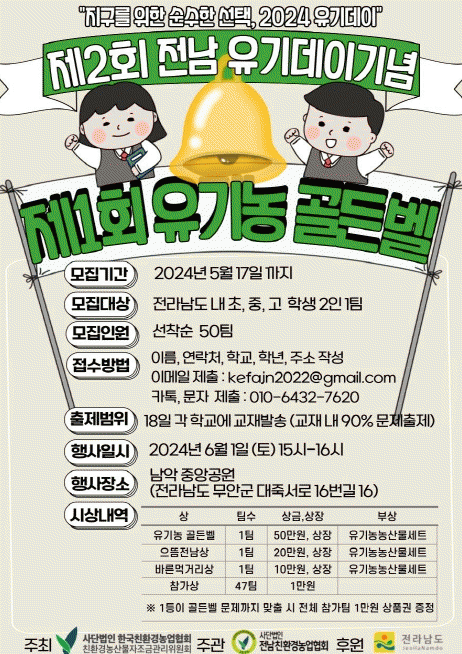 [¹Ìµð¾îÀü³² Á¦°¥´ëÁ¾ ±âÀÚ]Àü¶ó³²µµ´Â ¡®2024 À¯±â³óµ¥ÀÌ ±â³ä½Ä ¹× ģȯ°æ³ó»ê¹° Á÷°Å·¡ÀåÅÍ¡¯°¡ ¿À´Â 6¿ù 1ÀÏ ¿ÀÈÄ 2~7½Ã Àü³²µµÃ» ¾Õ ³²¾Ç Áß¾Ó°ø¿ø¿¡¼ ´Ùä·Î¿î ³»¿ëÀ¸·Î ÆîÃÄÁø´Ù°í ¹àÇû´Ù. Ä£°æ³ó¾÷´Üü´Â ¸Å³â 6¿ù 2ÀÏÀ» ¡®À¯±â¡¦