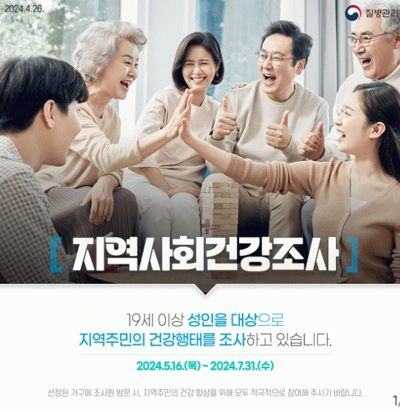 [¹Ìµð¾îÀü³² ÀüÇü¼º ±âÀÚ]¿©¼ö½Ã´Â 16ÀϺÎÅÍ 7¿ù 31ÀϱîÁö 2024³â ¡®Áö¿ª»çȸ°Ç°Á¶»ç¡¯¸¦ ½Ç½ÃÇÑ´Ù. ¡®Áö¿ª»çȸ°Ç°Á¶»ç¡¯´Â º¸°Çº¹ÁöºÎ(Áúº´°ü¸®Ã»)°¡ ÁÖ°üÇÏ´Â ¹ýÁ¤Á¶»ç·Î Á¶»ç °á°ú´Â Áö¿ªº¸°Ç»ç¾÷ÀÇ ¼º°ú¸¦ ü°èÀûÀ¸·Î Æò°¡ÇÒ ¼ö ÀÖ¡¦