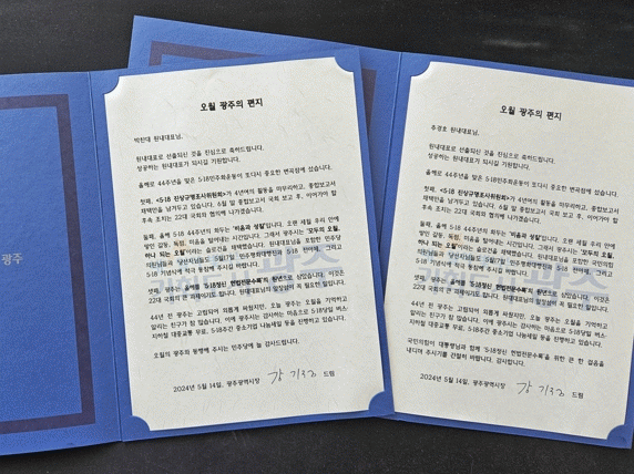 [¹Ìµð¾îÀü³² Á¦°¥´ëÁ¾ ±âÀÚ]°±âÁ¤ ±¤ÁÖ±¤¿ª½ÃÀåÀº 5¡¤18¹ÎÁÖȿ 44ÁÖ³âÀ» ¸Â¾Æ 14ÀÏ ±¹È¸¸¦ ¹æ¹®, ¿©¾ß ¿ø´ë´ëÇ¥¸¦ ¸¸³ª ¡®¿À¿ù ±¤ÁÖÀÇ ÆíÁö¡¯¸¦ ÀüÇß´Ù. ° ½ÃÀåÀº À̳¯ ´õºÒ¾î¹ÎÁÖ´ç ¹ÚÂù´ë ¿ø³»´ëÇ¥¿Í ±¹¹ÎÀÇÈû Ãß°æÈ£ ¿ø³»´ëÇ¥¡¦
