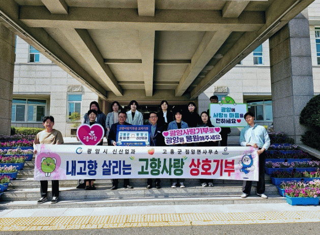 [¹Ìµð¾îÀü³² ÀÓ¼º¿Ï ±âÀÚ]±¤¾ç½Ã ½Å»ê¾÷°ú¿Í °íÈﱺ Á¡¾Ï¸é °øÁ÷ÀÚµéÀÌ Áö³ 10ÀÏ Áö¿ª °£ »ó»ý¹ßÀüÀ» À§ÇØ °íÇâ»ç¶û±âºÎ±Ý »óÈ£±âºÎ¿¡ µ¿ÂüÇß´Ù. À̹ø »óÈ£±âºÎ¿¡´Â ¾ç µµ½Ã °øÁ÷ÀÚ 20¸íÀÌ 1ÀÎ 10¸¸¿ø¾¿, ÃÑ 200¸¸¿øÀ» ±âºÎÇÏ¸ç °íÇâ»ç¡¦