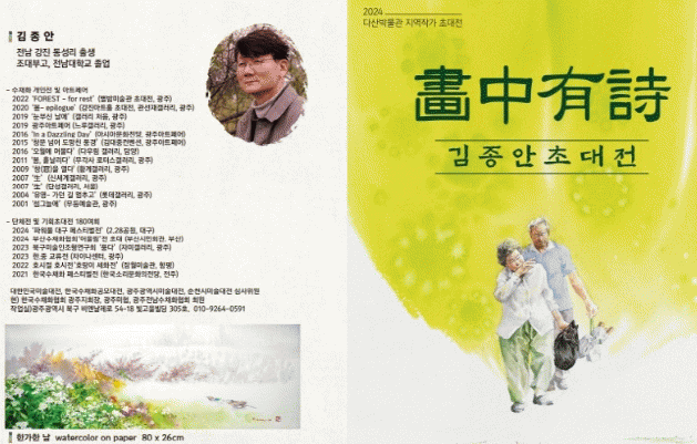 [¹Ìµð¾îÀü³² °í±Ô¼® ±âÀÚ]°Áø±º ´Ù»ê¹Ú¹°°üÀÌ ¿À´Â 26ÀϱîÁö ±èÁ¾¾È ÀÛ°¡ÀÇ ÃÊ´ëÀü ¡®ÈÁßÀ¯½Ã(ûþñéêóãÌ)¸¦ °³ÃÖÇÑ´Ù. ±èÁ¾¾È ÀÛ°¡´Â ÇöÀç Çѱ¹¼öäÈÇùȸ ±¤ÁÖÁöȸÀåÀ» ¿ªÀÓÇϰí ÀÖÀ¸¸ç, ·Ôµ¥°¶·¯¸®, ½Å¼¼°è°¶·¯¸®, ±è´ëÁßÄÁº¥¼Ç, ¾Æ½Ã¡¦