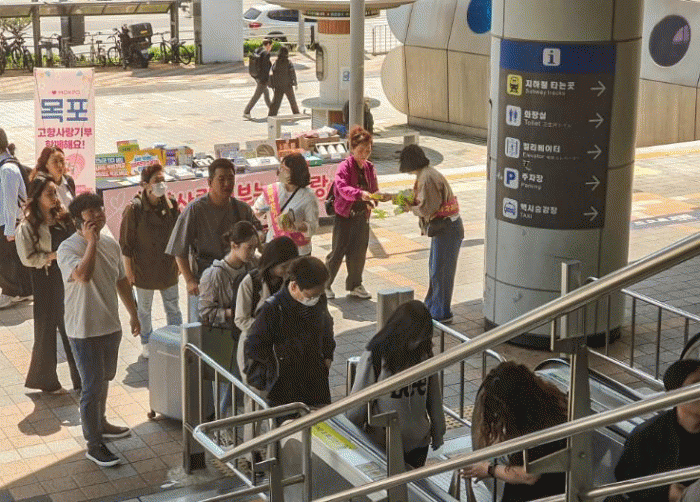 [¹Ìµð¾îÀü³² °í±Ô¼® ±âÀÚ]¸ñÆ÷½Ã°¡ °¡Á¤ÀÇ ´Þ 5¿ùÀ» ¸Â¾Æ Áö³ 10ÀÏ KTX ±¤ÁÖ¼ÛÁ¤¿ª ±¤Àå¿¡¼ °íÇâ»ç¶û±âºÎÁ¦ È«º¸ Ȱµ¿À» ÆîÃÆ´Ù. À̹ø È«º¸´Â KTX±¤ÁÖ ¼ÛÁ¤¿ª ÀÌ¿ëÀÚ¿Í Àα٠ÁÖ¹ÎÀ» ´ë»óÀ¸·Î Á¦µµ ¾È³»¿Í µ¿Âü ºÐÀ§±â Á¶¼ºÀ» À§ÇØ ¸¶·Ã¡¦