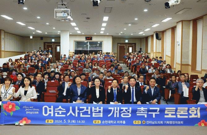 [¹Ìµð¾îÀü³² Á¦°¥´ëÁ¾ ±âÀÚ]Àü¶ó³²µµÀÇȸ ±âȹÇàÁ¤À§¿øÈ¸´Â 5¿ù 9ÀÏ ¼øÃµ´ëÇб³ ÆÄ·çȦ¿¡¼ ¡®¿©¼ø»ç°Ç¹ý °³Á¤ Ã˱¸ Åä·Ðȸ¡¯¸¦ °³ÃÖÇß´Ù. ¿©¼ö¤ý¼øÃµ 10¤ý19»ç°Ç Áø»ó±Ô¸í ¹× Èñ»ýÀÚ ¸í¿¹È¸º¹¿¡ °üÇÑ Æ¯º°¹ý(¾àĪ ¿©¼ø»ç°Ç¹ý)Àº 2021³â¡¦