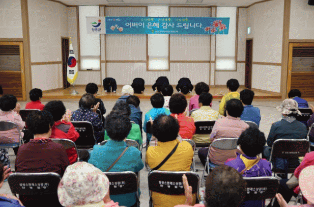 [¹Ìµð¾îÀü³² Á¦°¥´ëÁ¾ ±âÀÚ]ÀåÈﱺ ¿ë»ê¸é Áö¿ª»çȸº¸ÀåÇùÀÇü´Â 8ÀÏ È¦¸ö ¾î¸£½Å°ú Àå¼ö ¾î¸£½Å 170¸íÀ» ´ë»óÀ¸·Î ¾î¹öÀ̳¯ È¿»ç¶û ³ª´® Çà»ç¸¦ °³ÃÖÇß´Ù. Çà»ç´Â Ä«³×ÀÌ¼Ç ´Þ¾Æµå¸®±â, °Ç° ²Ù·¯¹Ì È¿(üø) ¹Ú½º Àü´Þ, ¿ë»ê ¾î¸°ÀÌÁý ¾Æ¡¦