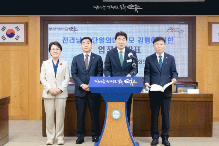 [¹Ìµð¾îÀü³² ÀÓ¼º¿Ï ±âÀÚ]¼øÃµ½Ã´Â ¡®¼øÃµ½ÃÀå, ¼øÃµ½ÃÀÇȸ, ±¹¸³¼øÃµ´ëÇб³, ´õºÒ¾î¹ÎÁÖ´ç ¼øÃµ¡¤±¤¾ç¡¤±¸·Ê¡¤°î¼º(°©¡¤À») ±¹È¸ÀÇ¿ø ´ç¼±ÀΡ¯°ú °øµ¿À¸·Î ÇÕÀÇÇÑ Àü¶ó³²µµ ´ÜÀÏÀÇ´ë °ø¸ð °Çà¿¡ ´ëÇÑ ÀÔÀåÀ» ¹ßÇ¥Çϰí, Áö³ 8ÀÏ ´ëÅë·É¡¦