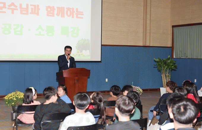 [¹Ìµð¾îÀü³² Á¦°¥´ëÁ¾ ±âÀÚ]ÀÌ»óÀÍ ÇÔÆò±º¼ö°¡ ÇÔÆò ¼ÕºÒ¼ÃʵîÇб³ ÇлýµéÀ» ´ë»óÀ¸·Î 7ÀÏ Æ¯°À» ÁøÇàÇÏ¸ç °ø°¨¡¤¼ÒÅëÀÇ ½Ã°£À» °¡Á³´Ù. ÀÌ»óÀÍ ÇÔÆò±º¼ö´Â ¼ÕºÒ¼ÃʵîÇб³ Çлý°ú Çкθð, ±³Á÷¿ø µîÀÌ Âü¼®ÇÑ °¡¿îµ¥, º»ÀÎÀÇ Àλý °æ¡¦