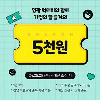 [¹Ìµð¾îÀü³² Á¦°¥´ëÁ¾ ±âÀÚ]¿µ±¤±ºÀº 5¿ù °¡Á¤ÀÇ ´ÞÀ» ¸ÂÀÌÇÏ¿© 5¿ù 8ÀϺÎÅÍ °ø°ø¹è´Þ¾Û ¡®¸Ô±úºñ¡¯·Î ÁÖ¹®Çϸé 5,000¿ø Áï½Ã ÇÒÀÎ ÄíÆùÀ» Áö±ÞÇϴ Ưº° À̺¥Æ®¸¦ ÃßÁøÇÑ´Ù. ¾î¹öÀ̳¯ÀÎ 5¿ù 8ÀϺÎÅÍ ¸Ô±úºñ¿¡¼ 1¸¸ 5õ ¿ø ÀÌ»ó ÁÖ¹®ÇÏ¡¦