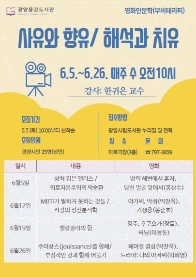 [¹Ìµð¾îÀü³² ÀÓ¼º¿Ï ±âÀÚ]±¤¾ç¿ë°µµ¼°üÀÌ ¿µÈ¸¦ ¼ÒÀç·Î ÇÑ Ä¡À¯ Àι®ÇÐ 'Àι®°¿¬(¹«ºñÅ×¶óÇÇ)'À» ÁøÇàÇÑ´Ù°í 2ÀÏ ¹àÇû´Ù. 'Àι®°¿¬(¹«ºñÅ×¶óÇÇ)'Àº ¿À´Â 6¿ù 5ÀϺÎÅÍ 26ÀϱîÁö ¸ÅÁÖ ¼ö¿äÀÏ ¿ÀÀü 10½Ã ÃÑ 4ȸ¿¡ °ÉÃÄ ÁøÇàµÇ¸ç, ¡®°¥¡¦