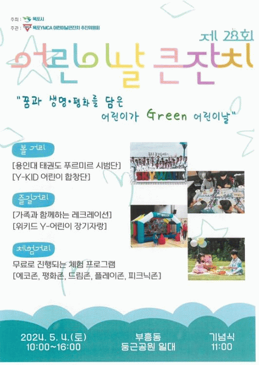 [¹Ìµð¾îÀü³² °í±Ô¼® ±âÀÚ]¸ñÆ÷½Ã´Â 102ȸ ¾î¸°À̳¯À» ¸Â¾Æ ¿À´Â 4ÀÏ ¿ÀÀü 10½Ã 30ºÐºÎÅÍ ¿ÀÈÄ 4½Ã±îÁö ºÎÈﵿ µÕ±Ù°ø¿ø ÀÏ´ë¿¡¼ ¡®2024³â ¸ñÆ÷½Ã ¾î¸°À̳¯ Å«ÀÜÄ¡ Çà»ç¡¯¸¦ °³ÃÖÇÑ´Ù. ¸ñÆ÷½Ã°¡ ÁÖÃÖÇÏ°í ¸ñÆ÷YMCA ¾î¸°À̳¯ Çà»ç ÃßÁøÀ§¡¦