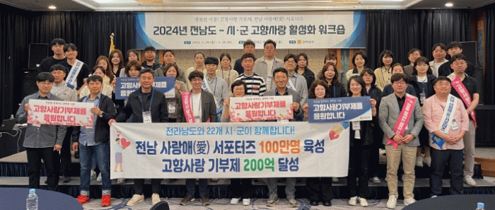 [¹Ìµð¾îÀü³² Á¦°¥´ëÁ¾ ±âÀÚ]Àü¶ó³²µµ´Â °íÇâ»ç¶û ±âºÎÁ¦¿Í Àü³² »ç¶û¾Ö(äñ) ¼Æ÷ÅÍÁî µµ-½Ã±º ´ã´çÀÚ ´ë»ó ¡®2024³â °íÇâ»ç¶û Ȱ¼ºÈ ¿öÅ©¼ó¡¯À» Áö³ 4¿ù 30ÀϱîÁö ÀÌÆ²°£ Á¦ÁÖ¿¡¼ °³ÃÖ, ÃßÁø ÇöȲ °øÀ¯ ¹× ¹ßÀü ¹æ¾ÈÀ» ¸ð»öÇß´Ù. ¿öÅ©¡¦