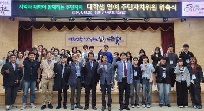 [¹Ìµð¾îÀü³² ÀÓ¼º¿Ï ±âÀÚ]¼øÃµ½Ã´Â 4¿ù 29ÀÏ ¼øÃµ´ëÇб³ Çлý 30¸íÀ» ¸í¿¹ÁÖ¹ÎÀÚÄ¡À§¿øÀ¸·Î À§ÃËÇß´Ù°í ¹àÇû´Ù. À̳¯ À§Ã˽Ŀ¡ ¾Õ¼ ½Ã´Â ¼øÃµ´ëÇб³ À§Çè»çȸºÐ¾ß HUSS »ç¾÷´Ü(Àι®»çȸ À¶ÇÕÀÎÀç¾ç¼º»ç¾÷´Ü) ¹× ¼øÃµ½ÃÁÖ¹ÎÀÚÄ¡ÇùÀÇȸ¿Í¡¦