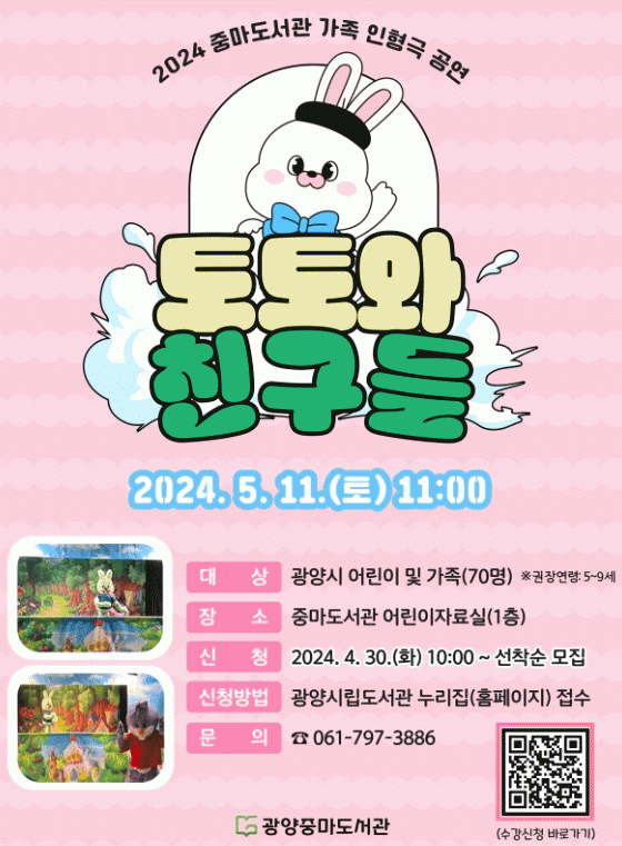 [¹Ìµð¾îÀü³² ÀÓ¼º¿Ï ±âÀÚ]±¤¾çÁ߸¶µµ¼°üÀº 5¿ù °¡Á¤ÀÇ ´ÞÀ» ¸Â¾Æ ¾î¸°À̸¦ ºñ·ÔÇÑ ¿Â °¡Á·ÀÌ ÇÔ²² Áñ±æ ¼ö ÀÖµµ·Ï ¿À´Â 5¿ù 11ÀÏ ¿ÀÀü 11½Ã¿¡ 'ÅäÅä¿Í Ä£±¸µé' ÀÎÇü±Ø °ø¿¬À» ÁøÇàÇÑ´Ù. À̹ø °ø¿¬Àº Ä£±¸, ÀÚÁ¸°¨, Àå¾ÖÀνÄÀ» ÁÖÁ¦·Î À塦