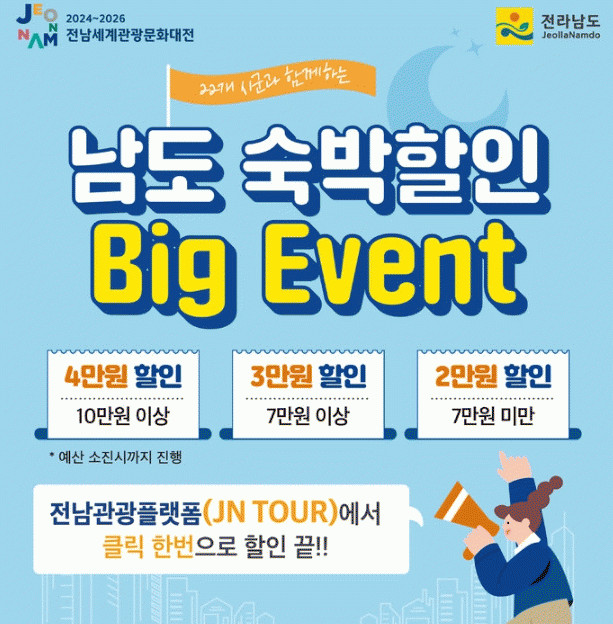 [¹Ìµð¾îÀü³² Á¦°¥´ëÁ¾ ±âÀÚ]°íÈﱺÀº Áö¿ª°ü±¤ Ȱ¼ºÈ¸¦ ÅëÇÑ °ü±¤°´ 1õ¸¸ ½Ã´ë ÁøÀÔÀ» À§ÇØ ÃßÁø ÁßÀÎ ³²µµ ¼÷¹ÚÇÒÀÎ BIG À̺¥Æ® »ç¾÷ÀÌ Àα⸮¿¡ ¿î¿µµÇ°í ÀÖ´Ù°í ¹àÇû´Ù. ³²µµ ¼÷¹ÚÇÒÀÎ BIG À̺¥Æ® »ç¾÷Àº Àü¶ó³²µµ¡¤±¤ÁÖ±¤¿ª½Ã ¿Ü¡¦