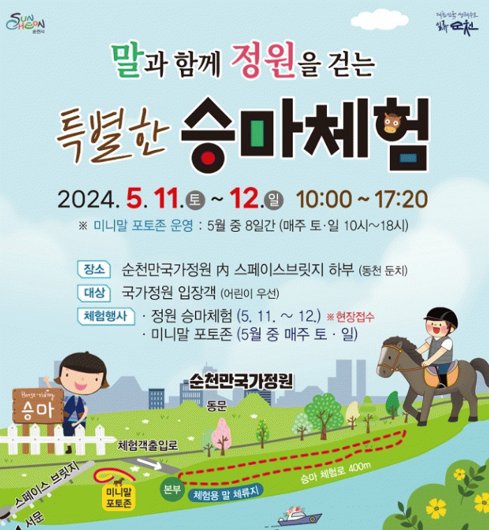 [¹Ìµð¾îÀü³² ÀÓ¼º¿Ï ±âÀÚ]¼øÃµ½Ã´Â °ü³» ¹Î°£½Â¸¶Àå 2°÷(¼øÃµ½Â¸¶Àå, ±¹Á¦½Â¸¶Àå)°ú Çù·ÂÀ¸·Î ¼øÃµ¸¸±¹°¡Á¤¿ø ³» ½ºÆäÀ̽ººê¸´Áö ÇϺΠµ¿ÃµµÐÄ¡¿¡¼¡®¹Ì´Ï¸» Æ÷ÅäÁ¸ ¹× ½Â¸¶Ã¼Çè Çà»ç¡¯¸¦ ÁøÇàÇÑ´Ù°í ¹àÇû´Ù. À̹ø Çà»ç´Â ¿ÀÀü 10½ÃºÎ¡¦