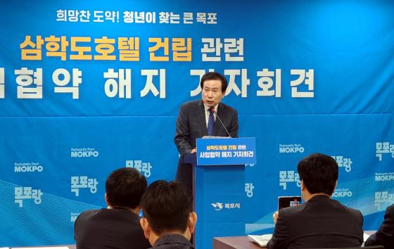 [¹Ìµð¾îÀü³² °í±Ô¼® ±âÀÚ] ¹ÚÈ«·ü ¸ñÆ÷½ÃÀåÀÌ ¡®»ïÇеµ È£ÅÚ ºÒ°¡¡¯¸¦ È®°íÇÏ°Ô ¹àÇû´Ù. ¹Î¼±8±â Ãâ¹üÀÌÈÄ 22°³¿ù ¸¸ÀÌ´Ù. ¹Ú ½ÃÀåÀº 29ÀÏ ±âÀÚȸ°ßÀ» °®°í ¡°Áö³ 22³â 1¿ù ¼±Á¤ÇÑ »ïÇеµ È£ÅÚ °Ç¸³ ¹Î°£»ç¾÷ÀÚÀÇ ¿ì¼±Çù»ó ´ë»óÀÚ¡¦