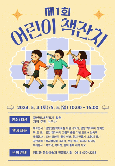 [¹Ìµð¾îÀü³² °í±Ô¼® ±âÀÚ]¾î¸°À̳¯ ¿µ¾Ï ¿ÕÀιڻçÀ¯ÀûÁö¿¡ ¿ÀÃþ¡®Ã¥¡¯Å¾ º¸·¯ ¿À¼¼¿ä. ¿µ¾Ï±ºÀÌ ¾î¸°À̳¯À» ¸Â¾Æ 5¿ù4Àϰú 5ÀÏ ¿ÕÀιڻçÀ¯ÀûÁö¿¡¼ ¡®Á¦1ȸ ¾î¸°ÀÌ Ã¥ÀÜÄ¡¡¯¸¦ °³ÃÖÇÑ´Ù. ¾î¸°ÀÌ Ã¥ÀÜÄ¡´Â ¾î¸°ÀÌ¿Í ±× °¡Á·ÀÌ ´Ù¾çÇÑ¡¦