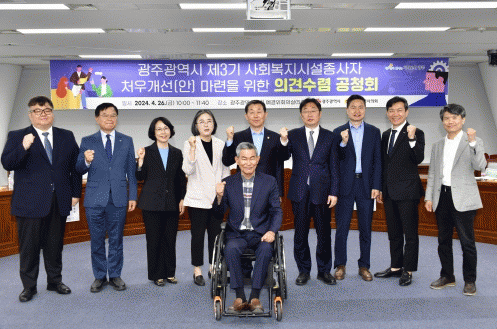 [¹Ìµð¾îÀü³² Á¦°¥´ëÁ¾ ±âÀÚ]±¤ÁÖ±¤¿ª½Ã´Â 26ÀÏ ±¤ÁÖ½ÃÀÇȸ ¿¹»ê°á»êÀ§¿øÈ¸ ȸÀǽǿ¡¼ »çȸº¹Áö½Ã¼³ °ü°èÀÚ µî 100¿©¸íÀÌ Âü¼®ÇÑ °¡¿îµ¥ ¡®Á¦3±â »çȸº¹Áö½Ã¼³ Á¾»çÀÚ Ã³¿ì°³¼± Á¾ÇÕ°èȹ ¼ö¸³ Àǰ߼ö·ÅÀ» À§ÇÑ °øÃ»È¸¡¯¸¦ °³ÃÖÇß´Ù. ¡®Á¦¡¦