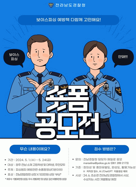 [¹Ìµð¾îÀü³² Á¦°¥´ëÁ¾ ±âÀÚ]Àü¶ó³²µµ°æÂûûÀº Çǽ̹üÁË(º¸À̽ºÇǽÌ, ¸Þ½ÅÀúÇǽÌ, ¸öÄ·ÇǽÌ) ¿¹¹æÀ» À§ÇÑ Âü¿©Ä¡¾È À¯Æ©ºê ¼îÃ÷ µî ¼ôÆû ÄÜÅÙÃ÷ ¾ÆÀ̵ð¾î °ø¸ðÀüÀ» °³ÃÖÇÑ´Ù. À̹ø °ø¸ðÀüÀº ÁֹεéÀÇ Âü½ÅÇÑ ¾ÆÀ̵ð¾î¿Í Àû±ØÀûÀÎ Âü¿©¸¦¡¦