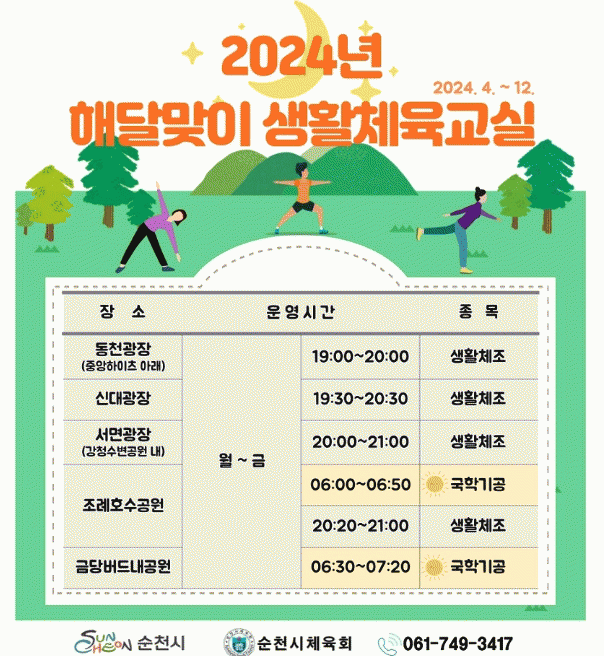 [¹Ìµð¾îÀü³² ÀÓ¼º¿Ï ±âÀÚ]¼øÃµ½Ã°¡ Áö¿ªÁÖ¹ÎÀÇ °Ç°ÁõÁø°ú °ÇÀüÇÑ ¿©°¡ ¹®È¸¦ Á¶¼ºÇϱâ À§ÇØ 2024³â ÇØ´Þ¸ÂÀÌ »ýȰüÀ°±³½ÇÀ» ¿î¿µÇÑ´Ù°í ¹àÇû´Ù. ÇØ´Þ¸ÂÀÌ »ýȰüÀ°±³½ÇÀº »õº®°ú Àú³á¿¡ ÁÖ 5ÀÏ(¿ù ºÎÅÍ ±Ý) 1½Ã°£¾¿ Áö¿ª ÁÖ¹ÎÀÇ »ýȰ¡¦