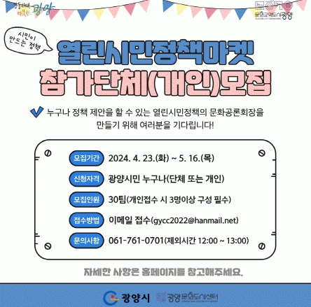 [¹Ìµð¾îÀü³² ÀÓ¼º¿Ï ±âÀÚ]±¤¾ç¹®Èµµ½Ã¼¾ÅÍ´Â Áö³ÇØ ÀÌ¾î ¿ÃÇØµµ ½Ã¹ÎµéÀÌ ÁÖµµÇÏ´Â Á¤Ã¥Á¦¾È¸¶ÄÏ ÇÁ·Î±×·¥À» ÁøÇàÇÑ´Ù. ¡®¿¸°½Ã¹ÎÁ¤Ã¥¸¶ÄÏ¡¯Àº ½Ã¹ÎÀÌ ±¤¾ç½Ã¿¡ ÇÊ¿äÇÏ´Ù°í »ý°¢ÇÏ´Â µµ½Ã¹®È Á¤Ã¥µéÀ» Á÷Á¢ ±¸»óÇØ ¹ßÇ¥ÇÏ´Â °ø·ÐÀÇ¡¦