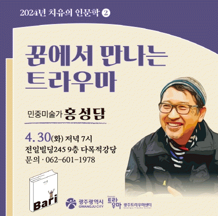 [¹Ìµð¾îÀü³² Á¦°¥´ëÁ¾ ±âÀÚ]±¤ÁÖÆ®¶ó¿ì¸¶¼¾ÅÍ´Â ¿À´Â 30ÀÏ ¿ÀÈÄ 7½Ã ÀüÀϺôµù245 ´Ù¸ñÀû°´ç¿¡¼ È«¼º´ã ¹ÎÁ߹̼ú°¡¸¦ ÃÊû, ¡®Ä¡À¯ÀÇ Àι®ÇС¯ °¿¬À» ÁøÇàÇÑ´Ù. À̳¯ °¿¬Àº ¡®²Þ¿¡¼ ¸¸³ª´Â Æ®¶ó¿ì¸¶¡¯¸¦ ÁÖÁ¦·Î ÁøÇàµÇ¸ç, Àΰ£ÀÇ ¹«¡¦