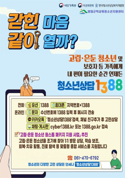 [¹Ìµð¾îÀü³² °í±Ô¼® ±âÀÚ]¿µ¾Ï±ºÇб³¹Ûû¼Ò³âÁö¿ø¼¾ÅͰ¡ °í¸³¡¤ÀºµÐ û¼Ò³âÀÇ ÀÏ»ó ȸº¹À» µ½´Â ¿ø½ºÅé ÆÐŰÁö Áö¿ø»ç¾÷À» ½Ç½ÃÇϰí ÀÖ´Ù. û¼Ò³â±â¿¡ ½ÃÀÛµÈ °í¸³¡¤ÀºµÐÀº û³â±â±îÁö Àå±âÈÇÏ´Â µî »çȸÀû ¹®Á¦·Î µÇÁö ¾ÊÀ¸·Á¸é Á¶±â¡¦