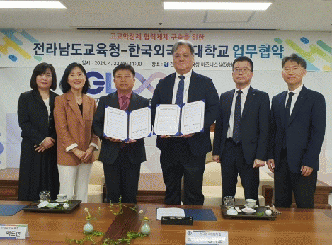 [¹Ìµð¾îÀü³² °í±Ô¼® ±âÀÚ]Àü¶ó³²µµ±³À°Ã»Àº 23ÀÏ Ã»»ç ºñÁî´Ï½º½Ç¿¡¼ Çѱ¹¿Ü±¹¾î´ëÇб³¿Í °í±³ÇÐÁ¡Á¦ Çù·ÂüÁ¦ ±¸ÃàÀ» À§ÇÑ ¾÷¹«Çù¾àÀ» ü°áÇß´Ù. À̹ø Çù¾àÀº °í±³ÇÐÁ¡Á¦¿¡ ´ëºñÇØ µµ±³À°Ã»°ú ´ëÇÐÀÇ ¿¬°è¸¦ ÅëÇØ °í±³ ±³À°°úÁ¤ ¿î¿µ¡¦