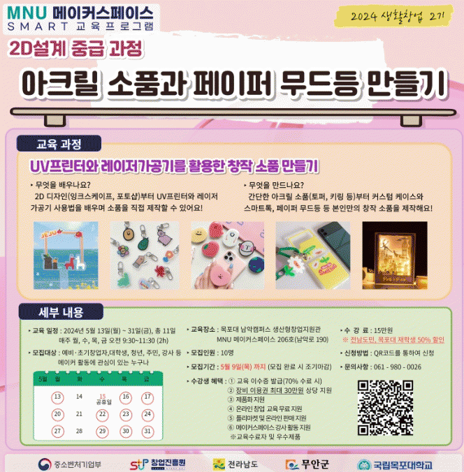 [¹Ìµð¾îÀü³² ±èÆÇ±¹ ±âÀÚ]Àü³² ¹«¾È±ºÀº ±¹¸³¸ñÆ÷´ëÇб³ â¾÷Çõ½Å¼¾ÅÍÀÇ MNU ¸ÞÀÌÄ¿½ºÆäÀ̽º Àü¹®·¦(¸ñÆ÷´ëÇб³ ³²¾ÇÄ·ÆÛ½º)¿¡¼ ¿À´Â 5¿ù 13ÀϺÎÅÍ 31ÀϱîÁö ¡®»ýȰ â¾÷ ¸ÞÀÌÄ¿ ±³À° 2±â¡¯ °úÁ¤À» ¿î¿µÇÑ´Ù°í ¹àÇû´Ù. »ýȰ â¾÷ ¸ÞÀÌÄ¿¡¦