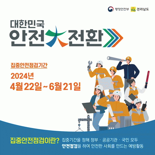 [¹Ìµð¾îÀü³² Á¦°¥´ëÁ¾ ±âÀÚ]Àü¶ó³²µµ´Â 2024³â ÁýÁß¾ÈÀüÁ¡°Ë ±â°£ÀÎ 22ÀϺÎÅÍ 6¿ù 21ÀϱîÁö 61Àϰ£ °Ç¼³ÇöÀå, ³ëÈİÇÃà½Ã¼³¹°, µµ·Î½Ã¼³¹°, ¾î¸°ÀÌÀÌ¿ë½Ã¼³, »ê»çÅÂÃë¾àÁö¿ª µî 1õ688°³¼Ò ÁýÁß¾ÈÀüÁ¡°ËÀ» ½Ç½ÃÇÑ´Ù°í ¹àÇû´Ù. Áö³ 201¡¦
