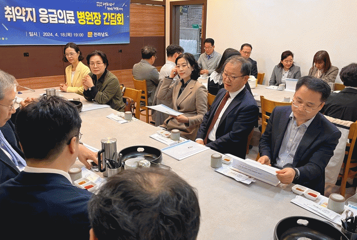[¹Ìµð¾îÀü³² Á¦°¥´ëÁ¾ ±âÀÚ]Àü¶ó³²µµ´Â ÀÇ·á Ãë¾àÁö ÀÀ±ÞÀÇ·á °ø¹é ÃÖ¼Òȸ¦ À§ÇØ ÇöÀå º´¿øÀåµé°ú Áö³ 18ÀÏ °£´ãȸ¸¦ ¿¾î ¾Ö·Î ¹× °ÇÀÇ»çÇ×À» ¼ö·ÅÇϰí, ÇØ´ç Áö¿ª ÀÇ·áȯ°æ °³¼± Á¤Ã¥À» °øÀ¯Çß´Ù. Àü³²µµ¿¡ µû¸£¸é ±¹¸³Áß¾ÓÀÇ·á¿ø ÀÚ¡¦