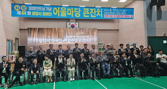 [¹Ìµð¾îÀü³² ÀÓ¼º¿Ï ±âÀÚ]±¤¾ç½Ã´Â ¡®ÇÔ²² ÇÏ´Â ±æ, ÆòµîÀ¸·Î ÇâÇÏ´Â ±æ¡¯ ½½·Î°Ç ¾Æ·¡ Áö³ 17ÀÏ ±¹¹ÎüÀ°¼¾ÅÍ¿¡¼ Á¦44ȸ Àå¾ÖÀÎÀÇ ³¯ ±â³äÇà»ç°¡ ¼ºÈ²¸®¿¡ ¸¶¹«¸®µÆ´Ù°í ¹àÇû´Ù. (»ç)Àü³²ÁöüÀå¾ÖÀÎÇùȸ ±¤¾ç½ÃÁöȸ°¡ ÁÖ°üÇÏ°í ±¤¾ç½Ã¡¦
